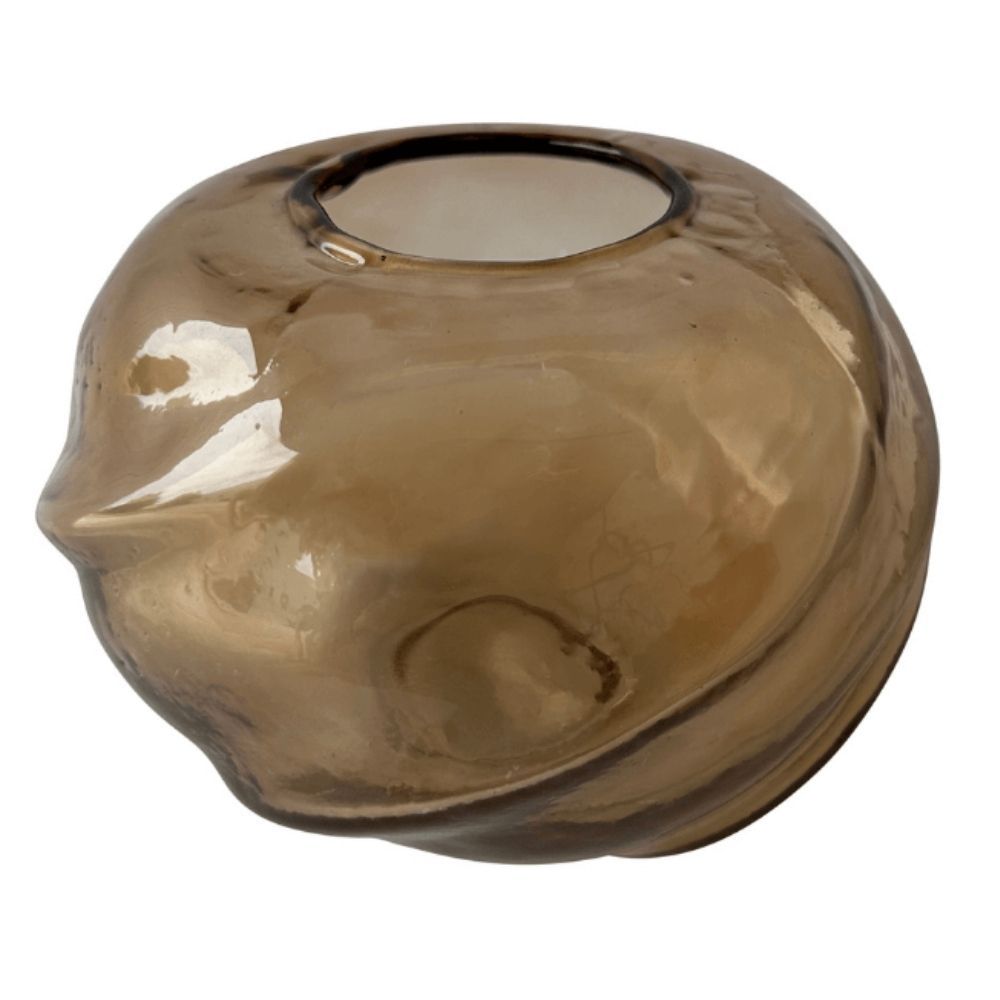The Carly Glass Vase/T-Lite Holder in Amber brings style and versatility into one striking piece. Its smooth, organic form pairs with the deep amber finish to create a warm and inviting atmosphere. Use it to display fresh blooms or let it glow with the soft flicker of a tealight candle – either way, it transforms any space with sophistication.